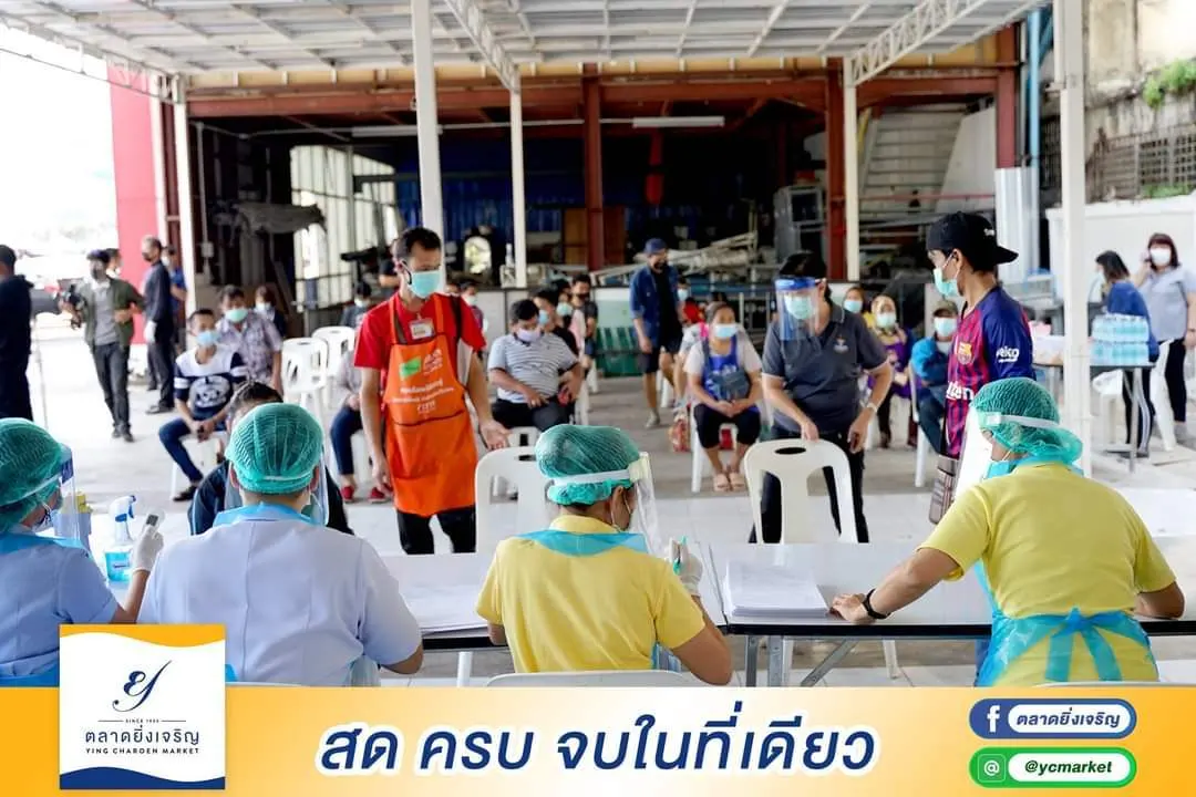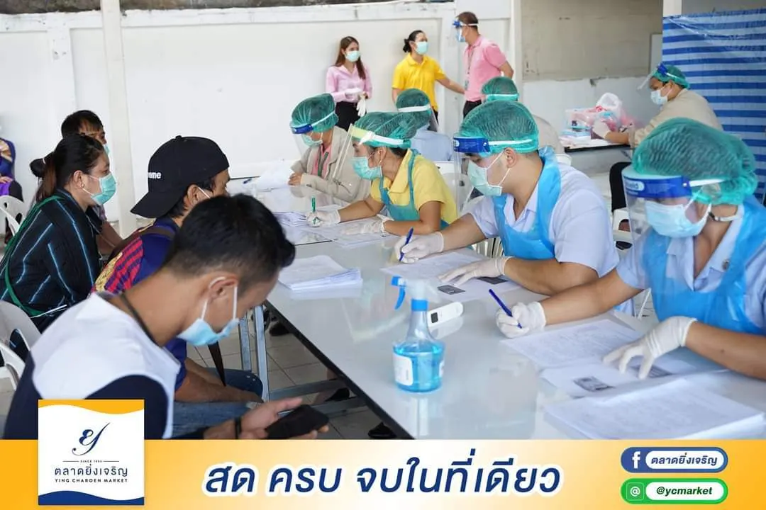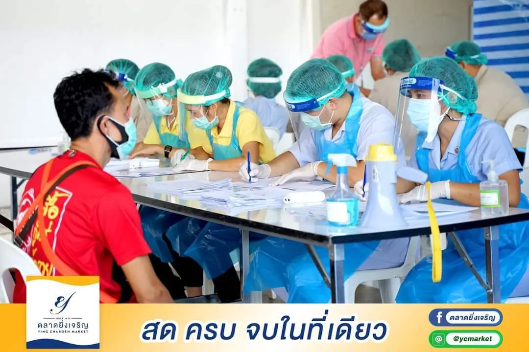 ตลาดยิ่งเจริญร่วมมือกับผู้ค้าอาหารทะเลจำนวน 30 ราย เข้ารับการตรวจหาเชื้อไวรัสโควิด-19 ตามวิธีการทางการแพทย์