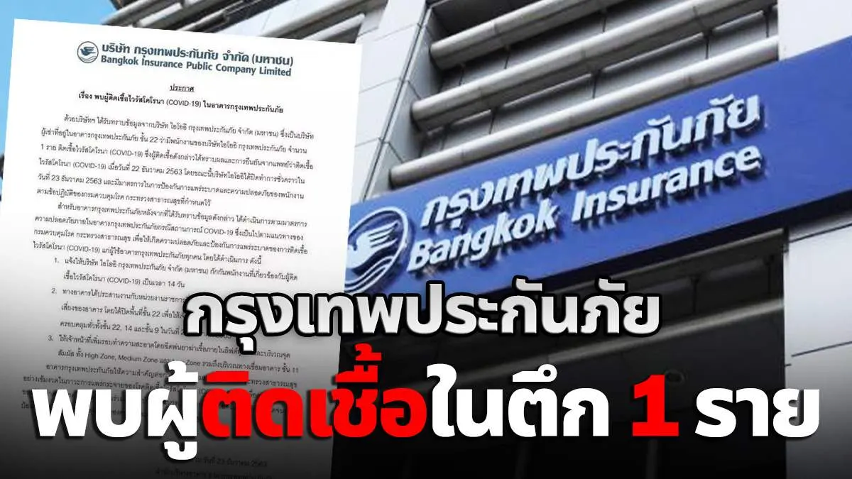 "กรุงเทพประกันภัย" ประกาศพบผู้ติดเชื้อโควิด-19 ในตึก 1 ราย