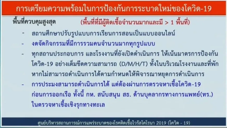 * พื้นที่สีแดงให้งดจัดกิจกรรมฉลองทุกชนิด เว้นแต่จัดกิจกรรมแบบออนไลน์