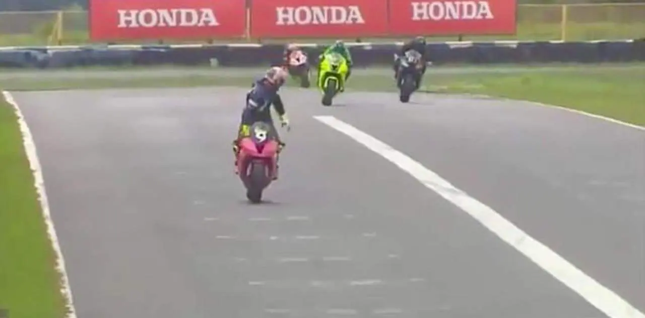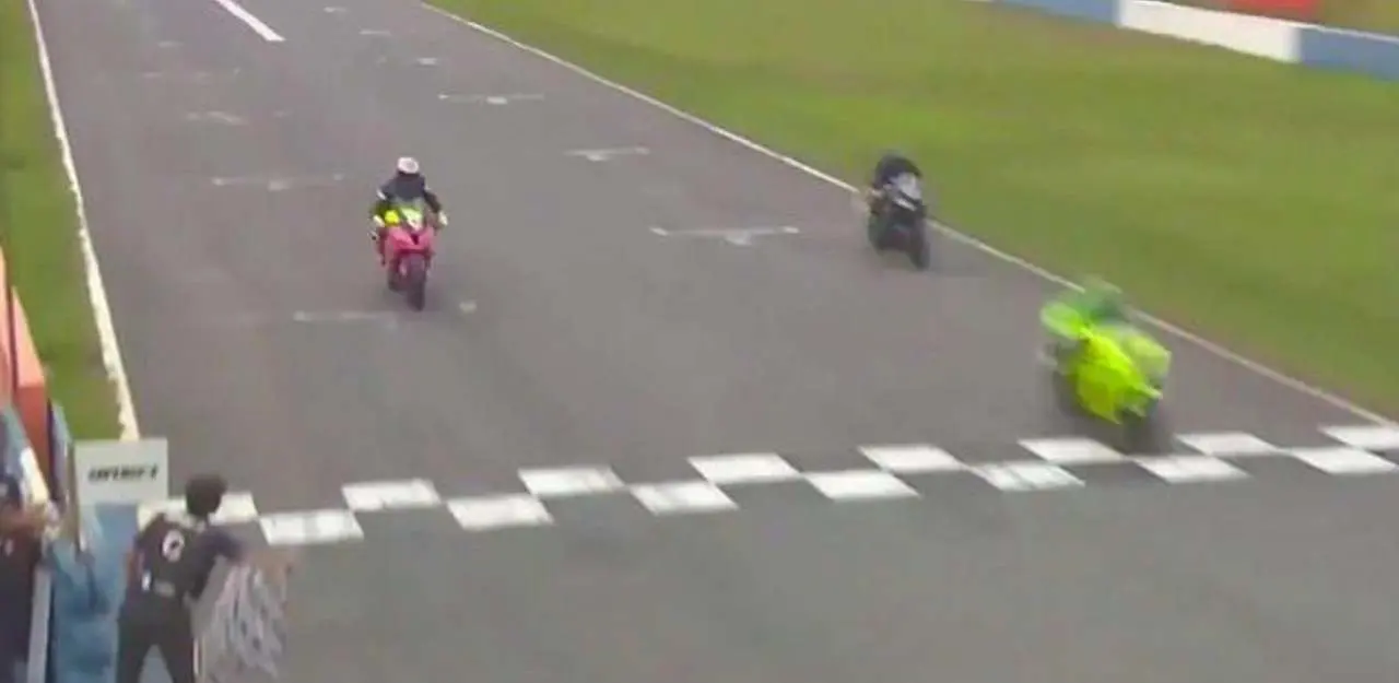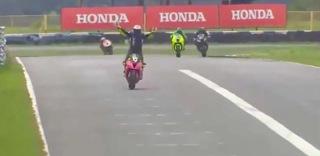 อย่าหาทำ!! นักแข่งจักรยานยนต์ ชูมือฉลอง ก่อนถึงเส้นชัย...สุดท้ายโดนแซงตกอันดับ (มีคลิป)