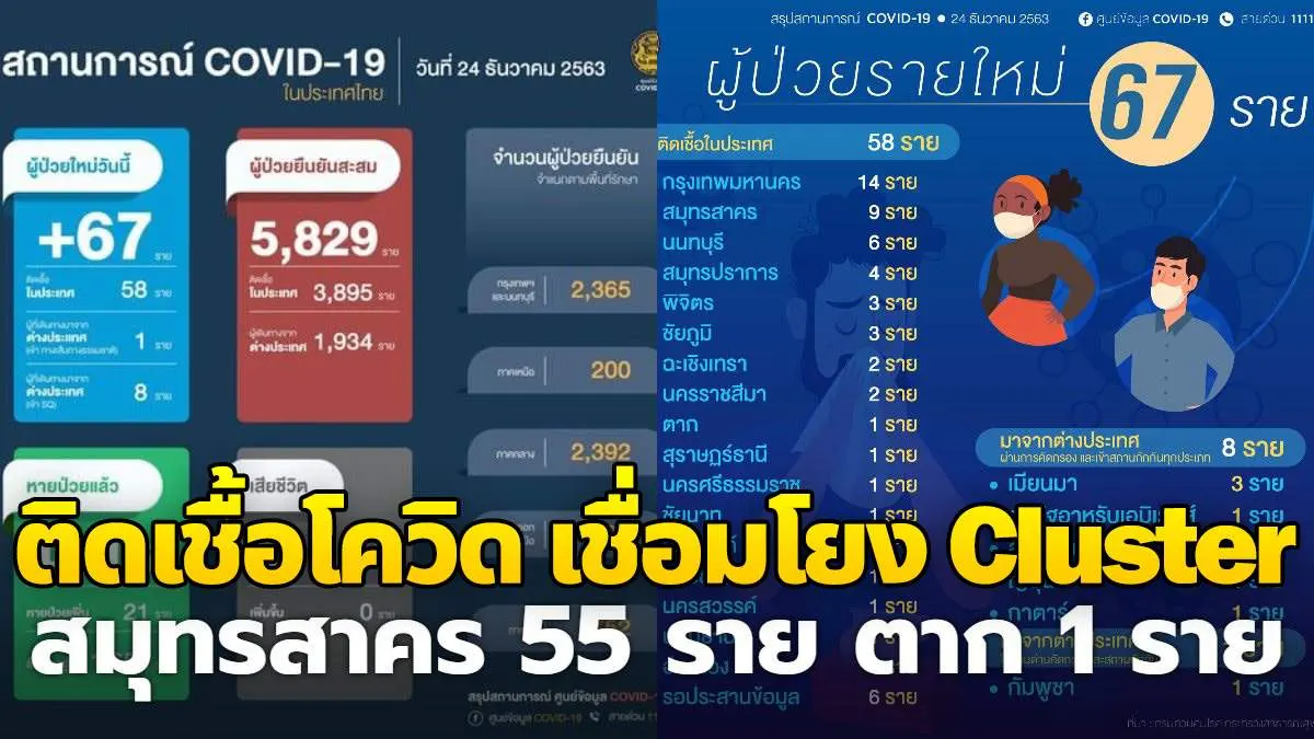 จำนวน 58 ราย จาก เกี่ยวเนื่อง cluster จังหวัดสมุทรสาคร 55 ราย