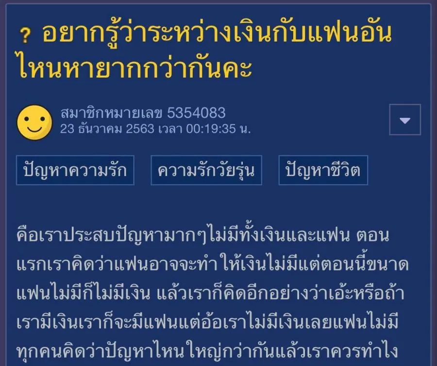 อยากรู้ว่าระหว่างเงินกับแฟนอันไหนหายากกว่ากันคะ