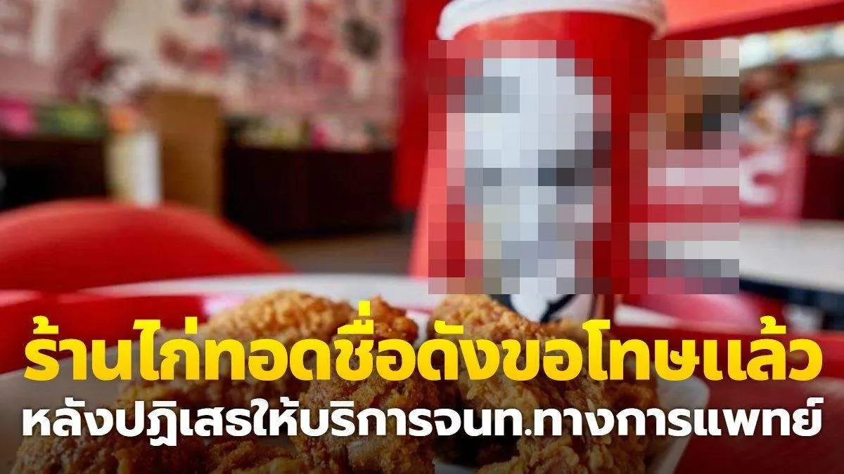 ร้านไก่ทอดชื่อดังออกมาขอโทษ กรณีที่สาขาสมุทรสาคร อำเภอบ้านแพ้ว ปฏิเสธให้บริการเจ้าหน้าที่ทางการแพทย์