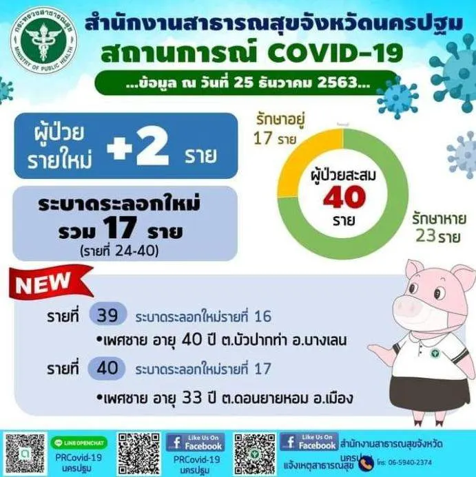 ผู้สื่อข่าวรายงานว่า นครปฐมมีผู้ป่วยโควิดสะสมอยู่ที่ 40 ราย กำลังรักษาอาการอยู่ 17 ราย รักษาหายแล้ว 23 ราย