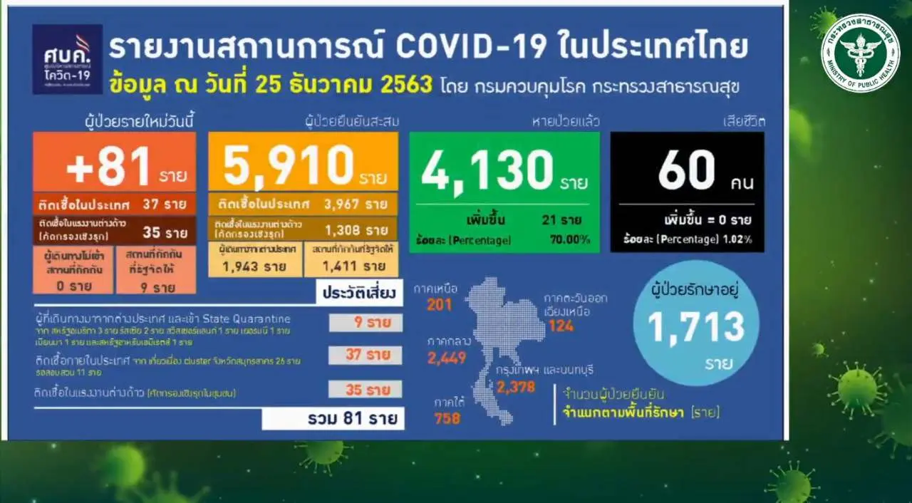 สธ.แถลงภาพรวมสถานการณ์โควิด-19 วันที่ 25 ธันวาคม 63