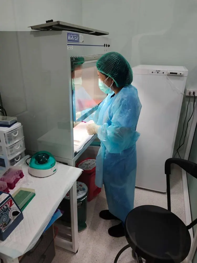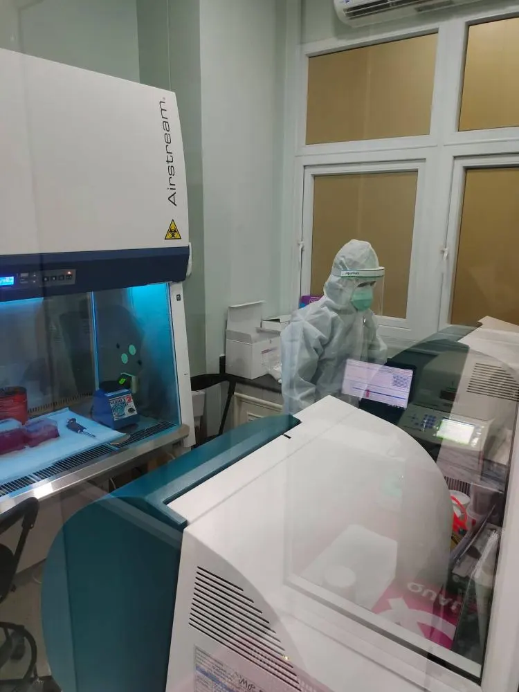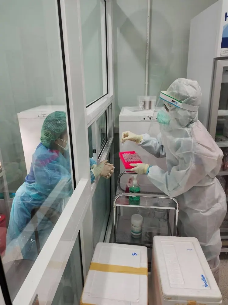 เมื่อตัวอย่างส่งตรวจมีเพิ่มขึ้นทุกวันเราจึงพยายามเร่งมือกันเต็มที่ เมื่อคืนอยู่ลุยกันจนเกือบตี 3 เกือบน็อคคาเครื่องตรวจกันเลยทีเดียว