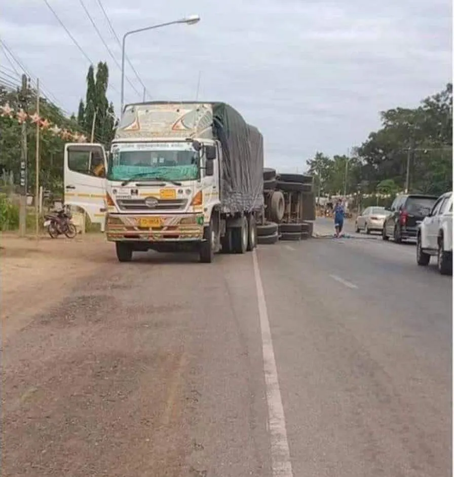 รถพ่วง ทำ แมส คว่ำเต็มถนนเลยจ้าา ไม่รู้จะขนไปไหน ไม่มีกล่องโลโก้ พิกัด บ้านซ่งแย้ อ. กุดชุม จ. ยโสธร เส้นทางนี้ มุ่งหน้าไปทาง จ. มุกดาหาร ที่มีสะพานไทยลาว