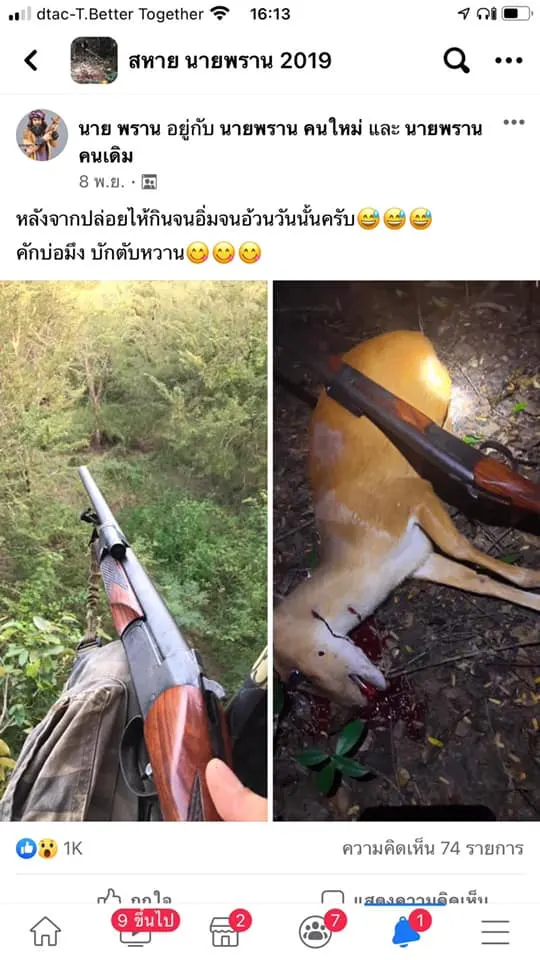 กูไปเจอแหล่ง พวกนักล่าสัตว์ป่ามา กลุ่มแม่งล่าสัตว์ป่าคุ้มครองแทบทั้งนั้นเลย แล้วก็เอามาโพสต์กันสนุกสนานกันเลย ใครรู้จักเจ้าหน้าที่ดูแลหน่วยงานพวกนี้มึงแจ้งไปที