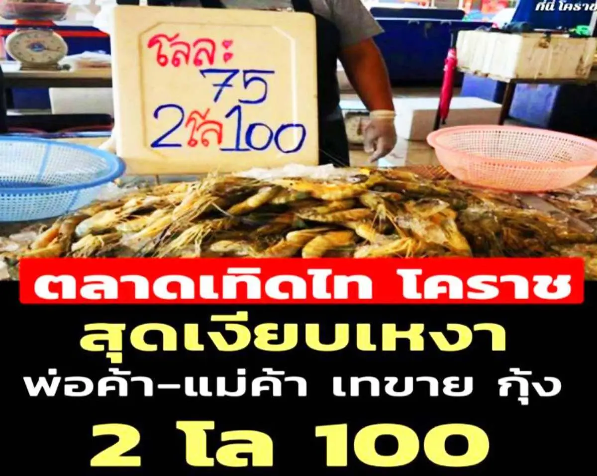 ตลาดเทิดไท โคราชสุดเงียบเหงา พ่อค้า แม่ค้า ทำใจต้องยอมเทขายกุ้ง 2 โลร้อย