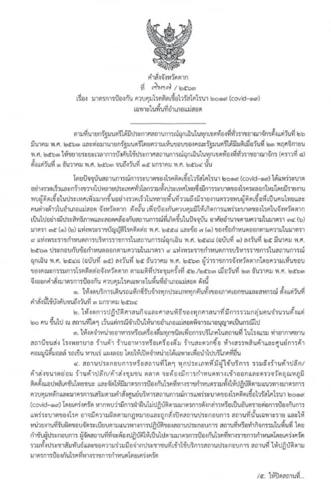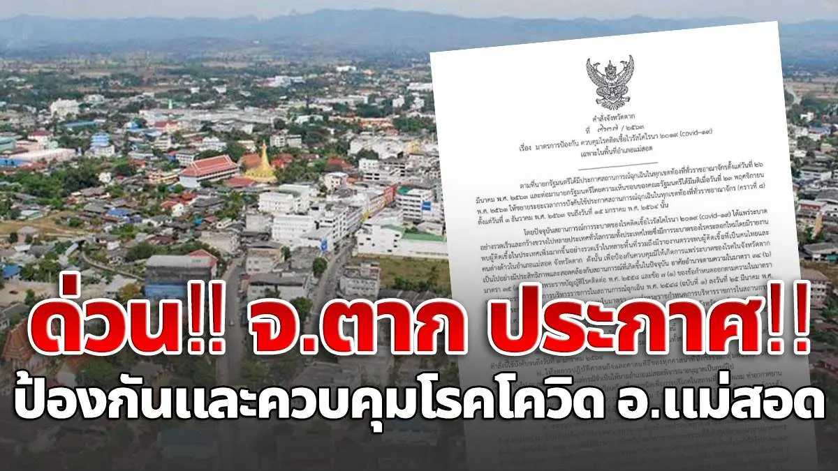 ด่วน‼ จ.ตาก ประกาศ!! ป้องกันและควบคุมโรคโควิด-19 ในพื้นที่อำเภอแม่สอด