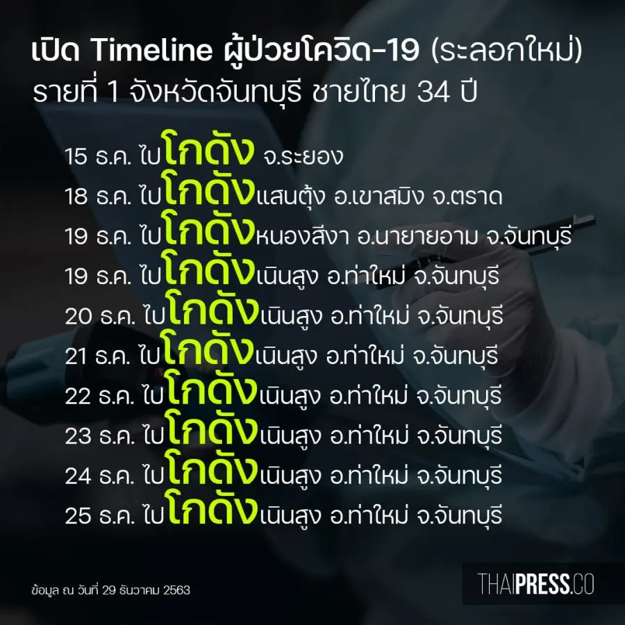เปิด Timeline ผู้ป่วยโควิด-19 (ระลอกใหม่) รายที่ 1 จังหวัดจันทบุรี ชายไทย 34 ปี