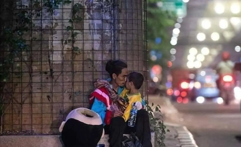 คุณพี่ที่อุ้มลูกไปไหนมาไหนด้วยกันทั้งกลางวันและกลางคืนในการหาเลี้ยงชีพเพื่อความอยู่รอดในแต่ละวันของครอบครัว