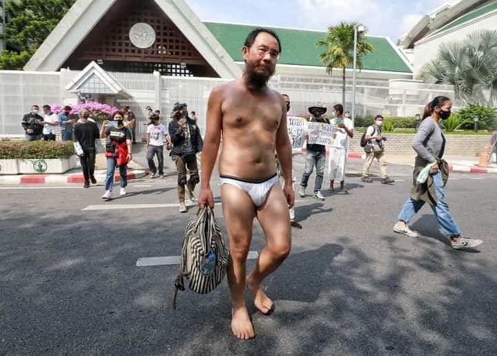 #ขอเงินประกันสังคมคืน น.สพ.บูรณ์ อารยพล หรือ หมอบูรณ์พร้อมด้วยกลุ่ม ‘#ขอคืนไม่ได้ขอทาน’ ได้ถอดกางเกงออก