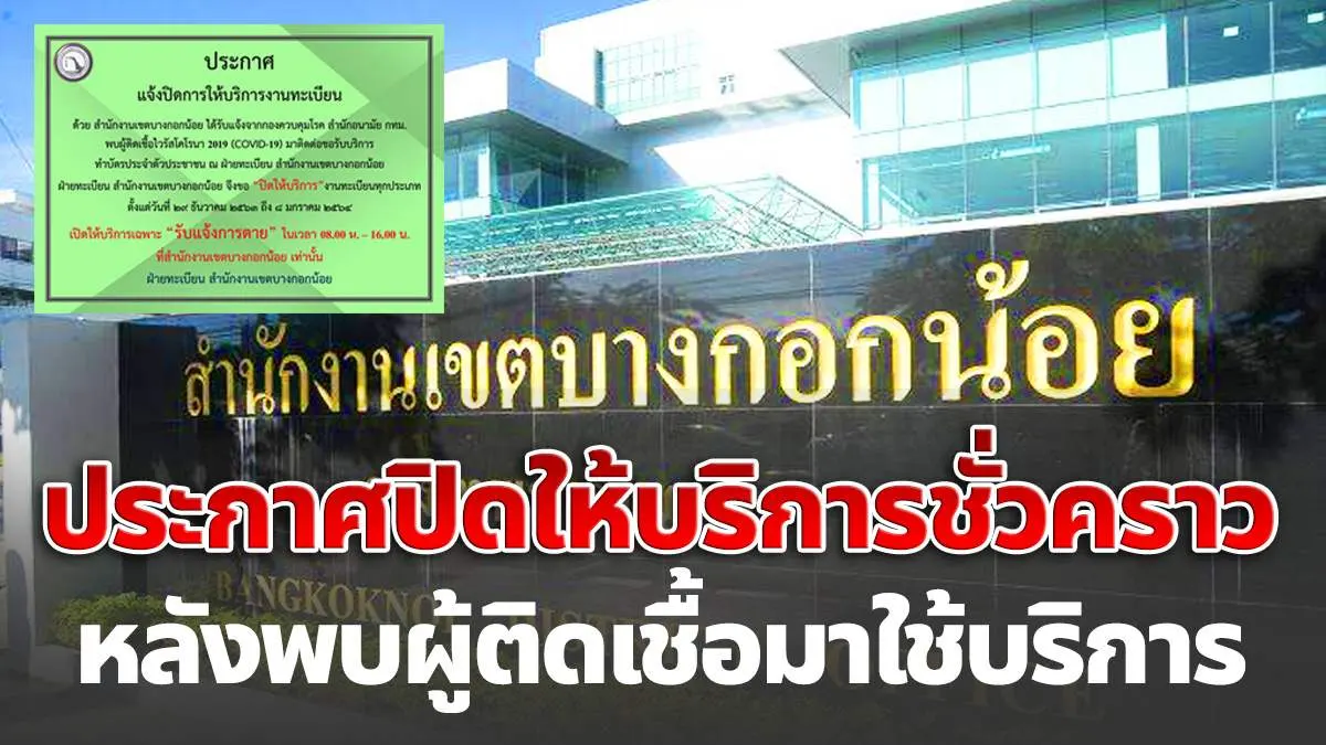 "โควิด" บุกฝั่งธนฯ!! สนง.เขตบางกอกน้อย ประกาศปิด หลังพบผู้ติดเชื้อมาใช้บริการ