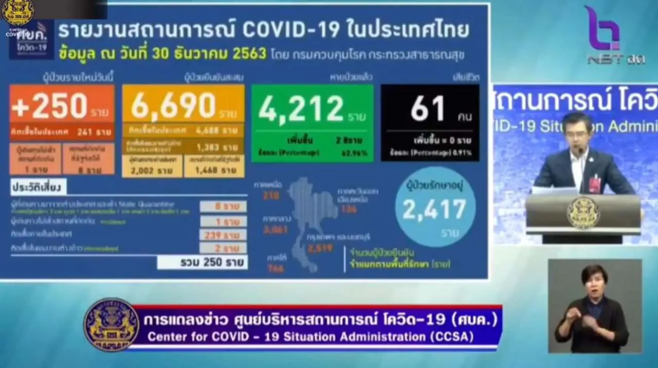 LIVE แถลงสถานการณ์ โควิด-19 ประจำวันที่ 30 ธันวาคม 2563 ติดเชื้อเพิ่ม 250 ราย