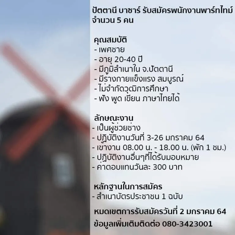 ปัตตานี บาซาร์ รับสมัครพนักงานพาร์ทไทม์ จำนวน 5 อัตรา