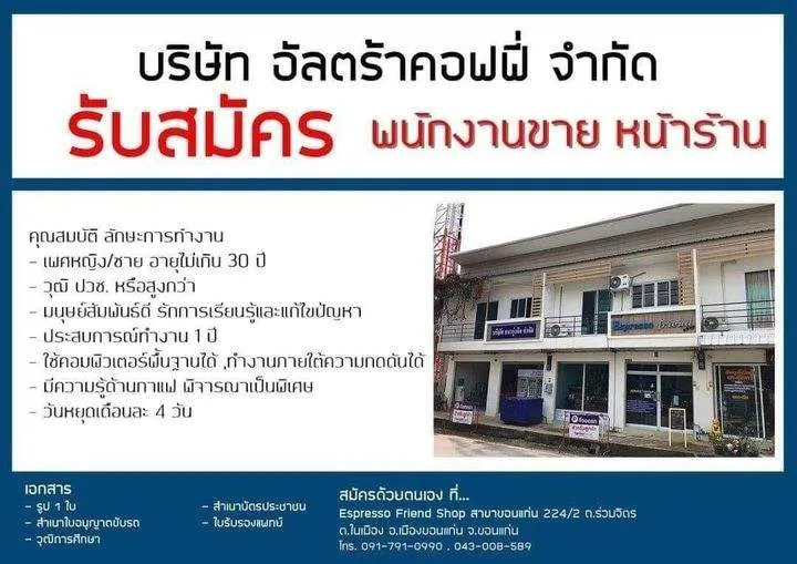 - มีความรู้ด้านกาแฟ พิจารณาเป็นพิเศษ