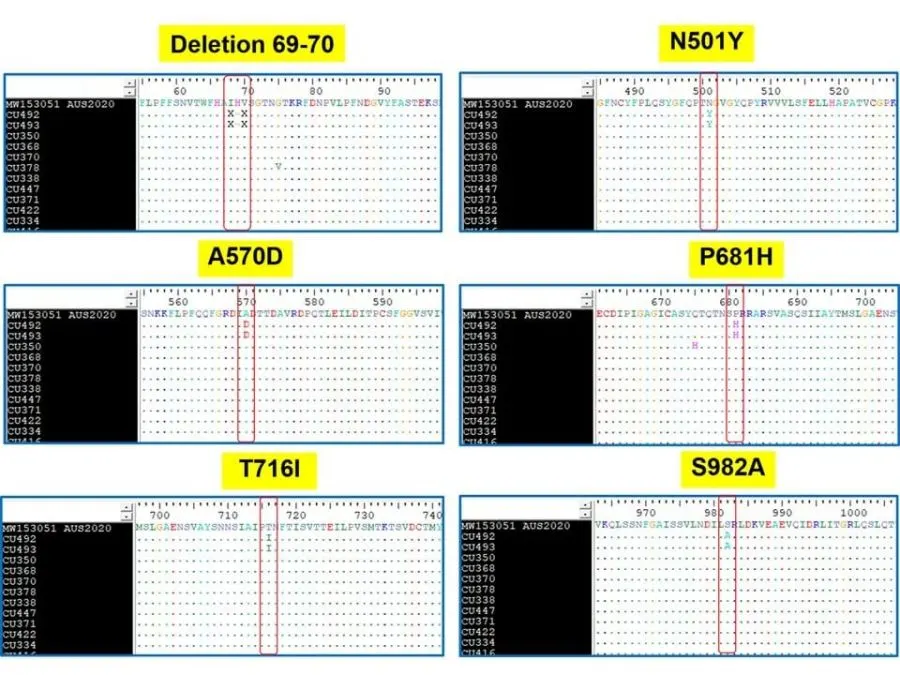 การถอดรหัสพันธุกรรมทำให้ทราบว่าสายพันธุ์นี้เป็นสายพันธุ์ของอังกฤษกลายพันธุ์ที่ทั่วโลกเฝ้าระวังกันมาก และมีการระงับเที่ยวบินจากอังกฤษ ได้ทำการถอดรหัสพันธุกรรม 2 ราย มีการกลายพันธุ์ที่ตำแหน่งเกาะจับตัวรับของเซลล์มนุษย์ (N501Y) การกลายพันธุ์ที่จุดตัดของสไปค์โปรตีน (P681H) ตำแหน่งอื่นๆ ที่ขาดหายไป (Spike 69-70 Deletion) และตำแหน่งอื่นๆ อีกดังในรูป