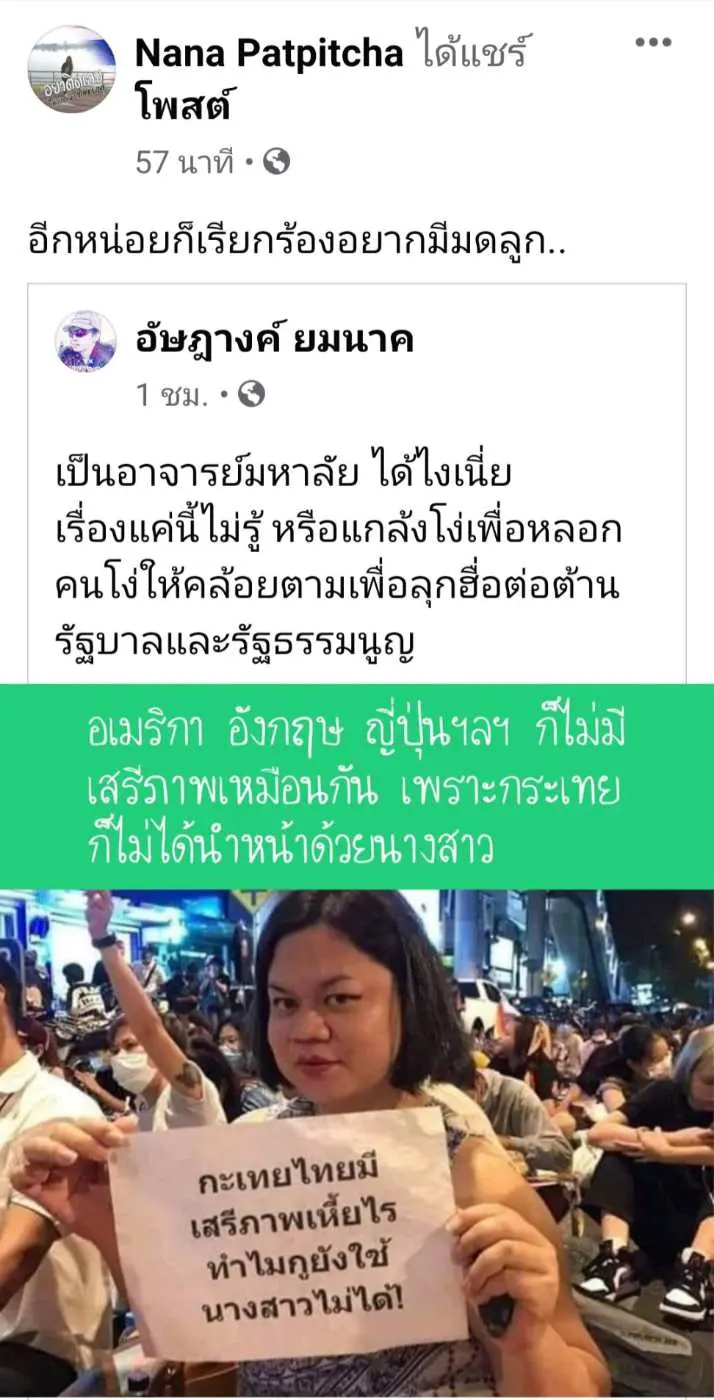 ต่อมามีการแชร์ต่อๆ โดยเฟสบุ๊คคุณ Nana patpitcha แชร์โพสพร้อมระบุข้อความว่า