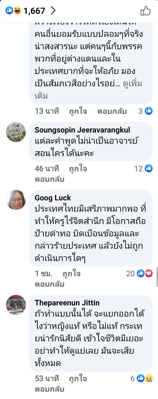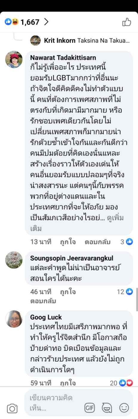 หลังจากนั้นก็มีสมาชิกเฟสบุ๊คมาแสดงความคิดเห็นกันเป็นจำนวนมาก