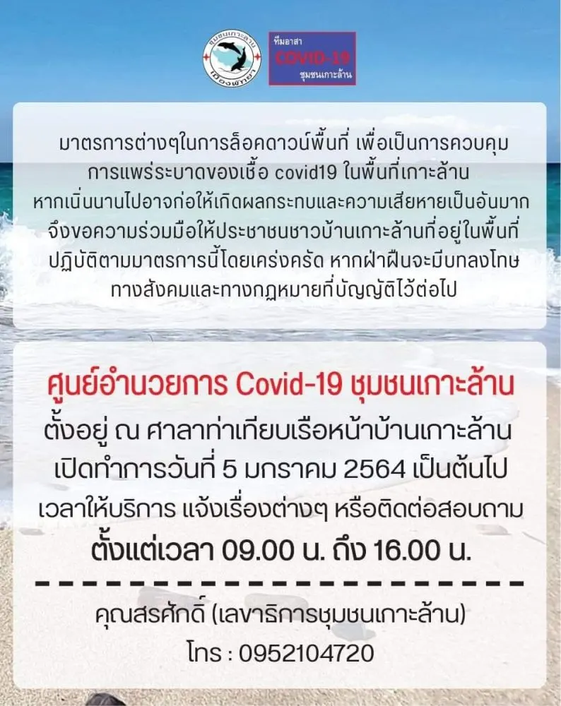 รายละเอียด!! มาตรการการล็อคดาวน์ "เกาะล้าน"