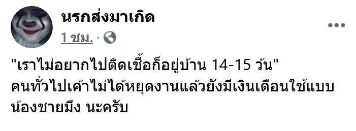 คนทั่วไปเค้าไม่ได้หยุดงานแล้วยังมีเงินเดือนใช้แบบน้องชายมึง นะครับ