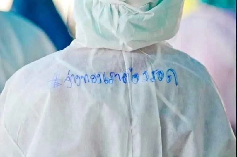บุคลากรทางการแพทย์ #อ่างทอง เขียนปลุกใจกัน หลังชุดปลอดเชื้อสู้โควิด-19