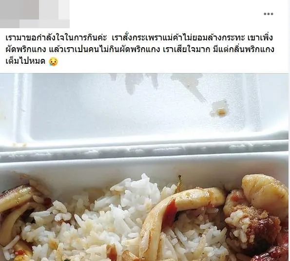 สาวเซ็ง!! สั่งกระเพรา แม่ค้าไม่ล้างกระทะ พริกแกงโผล่เพียบ