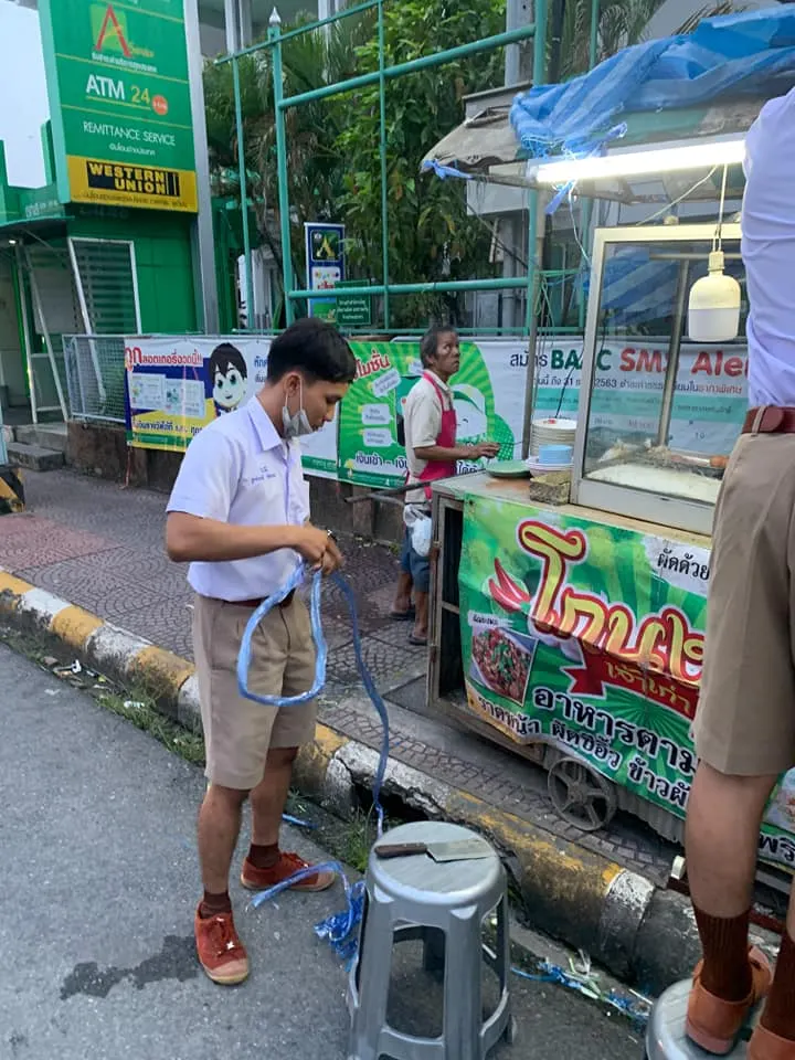 วันนี้นักเรียนดนตรีไทยโรงเรียนเบญจมราชูทิศ ได้เป็นจิตอาสาช่วยกันซื้ออุปกรณ์และติดตั้งหลอดไฟ เพื่อเพิ่มความสว่างให้กับทางร้าน