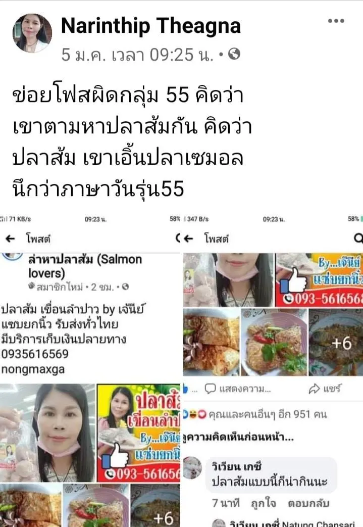 5. สมาชิกกลุ่มปลาส้มแซลมอน โดนปลาส้มหมักตกกันเพียบ เทิร์นจากวงการปลาดิบ สู่ปลาแดกทอดร้อนๆ กินกับข้าวสวย เป็นตาแซ่บจ้า 555555555 ก็เป็นความผิดพลาดที่น่ารัก และดีกับแกไป เอาเป็นใครสนใจอยากกินปลาส้มแซลมอนก็หาสั่งในกลุ่มนั้นได้