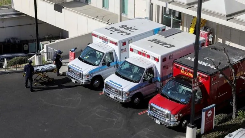 ที่ลอสแองเจลิสซึ่งเป็นเมืองใหญ่ที่สุดของแคลิฟอร์เนีย สื่อต่างรายงานว่าโรงพยาบาลบางแห่งที่มีผู้ป่วยล้นอยู่แล้วกำลังใช้นโยบายไม่อนุญาตให้รถพยาบาลเข้าไปส่งผู้ป่วยเพิ่ม ขณะที่ แมเรียนน์ เกาเชอ-ฮิลล์ ผู้อำนวยการทางการแพทย์ของสำนักงานบริการการแพทย์ฉุกเฉินเทศมณฑลลอสแองเจลิส ออกคำชี้แนะ ให้เจ้าหน้าที่รถพยาบาลงดรับผู้ป่วยผู้ใหญ่ที่หัวใจหยุดเต้นและไม่สามารถกู้ชีพได้ นอกจากนั้นยังชี้แนะให้เจ้าหน้าที่รถพยาบาลให้ออกซิเจนแก่ผู้ป่วยที่ระดับออกซิเจนต่ำมากๆ เท่านั้น