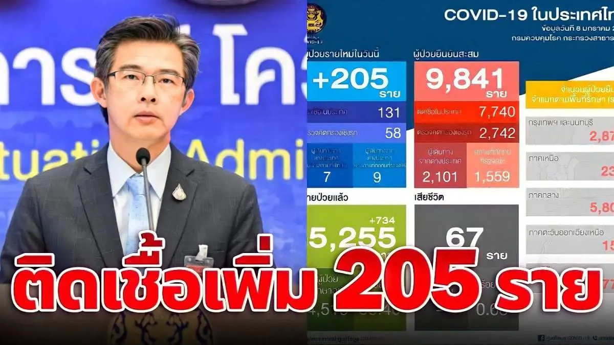 8 มกราคม : ไทยพบผู้ป่วยใหม่เพิ่ม 205 ราย แบ่งเป็น