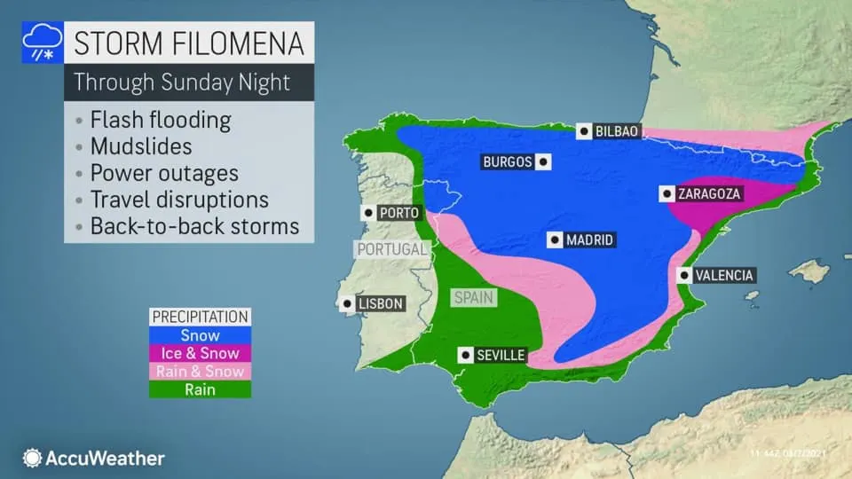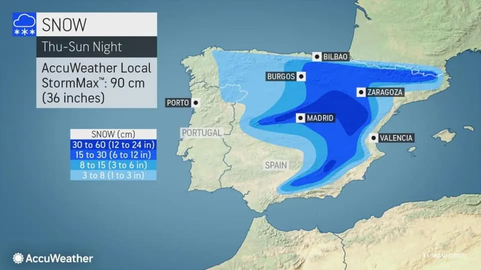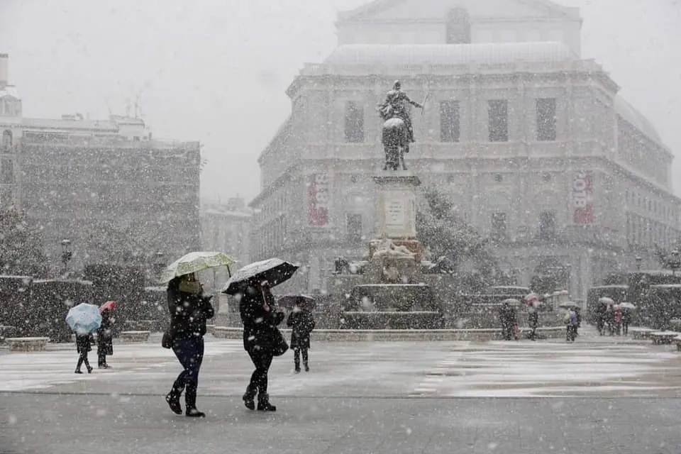 : กรุงมาดริด หิมะแรกตก ในรอบ 10 ปีอุณหภูมิ -1 องศา สภาพอากาศแปรปรวนคลื่นความเย็นปกคลุมทำให้หิมะตกในมาดริด เป็นภาพที่หาดูได้ยาก นอกจากหิมะแล้วหลายพื้นที่ของสเปนยังมีคำเตือนพายุฝนตกน้ำท่วม