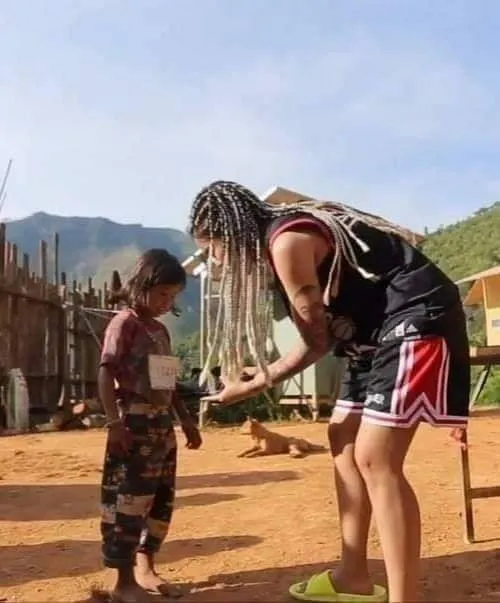 ที่หมู่บ้านแม่เกิบ ตั้งอยู่ที่ ต.นาเกียน อ.อมก๋อย จ.เชียงใหม่ ที่อยู่ห่างจากตัวเมืองเชียงใหม่กว่า 300 กม. ขาดแคลนทั้งเสื้อผ้ารองเท้าและอุปกรณ์การเรียน ไม่มีไฟฟ้าใช้ ไม่เคยแม้อต่ดูโทรทัศน์ โดยเธอได้นำเงินซื้อข้าวของต่าง ๆ ทั้งรองเท้า ไฟฉาย ไปมอบให้เด็ก ๆ และคนในหมู่บ้าน เนื่องในช่วงวันเด็ก