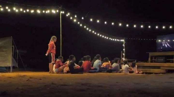 ให้น้องๆ ที่ลานของหมู่บ้าน และยังได้ สอนชาวบ้านปลูกผักกินและนำไปขาย