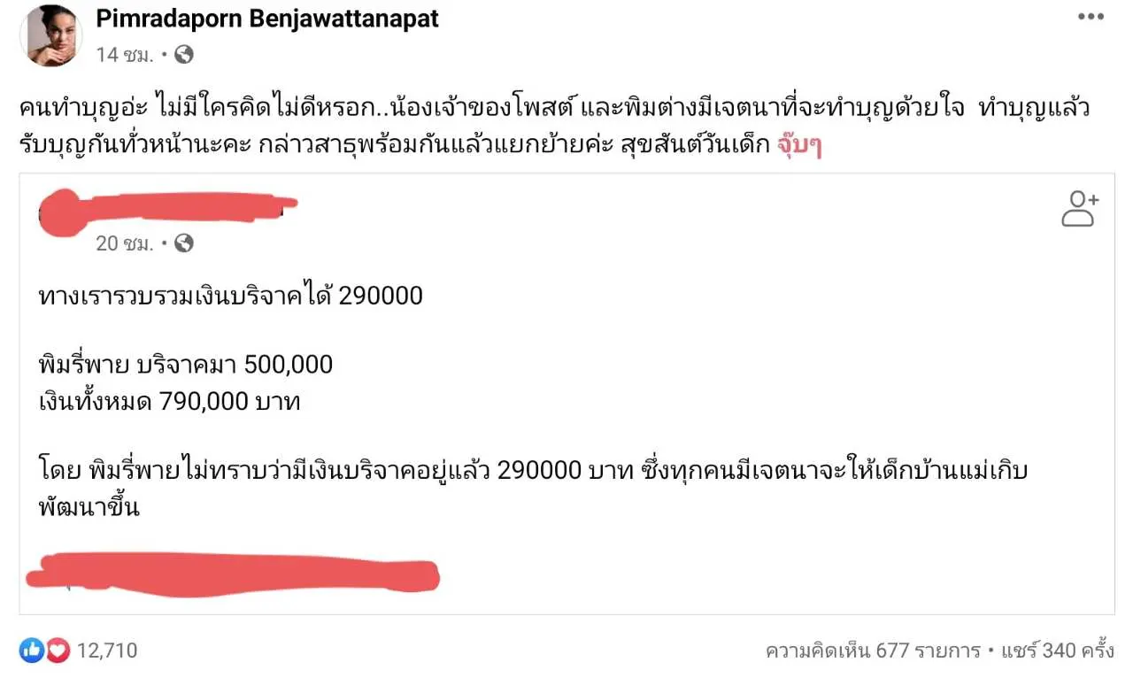 คนทำบุญอ่ะ ไม่มีใครคิดไม่ดีหรอก..น้องเจ้าของโพสต์ และพิมต่างมีเจตนาที่จะทำบุญด้วยใจ ทำบุญแล้วรับบุญกันทั่วหน้านะคะ กล่าวสาธุพร้อมกันแล้วแยกย้ายค่ะ สุขสันต์วันเด็ก จุ๊บๆ