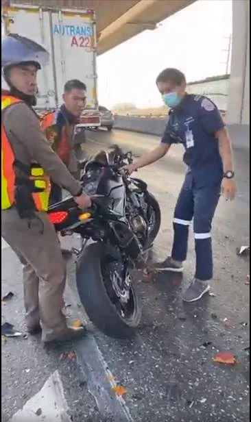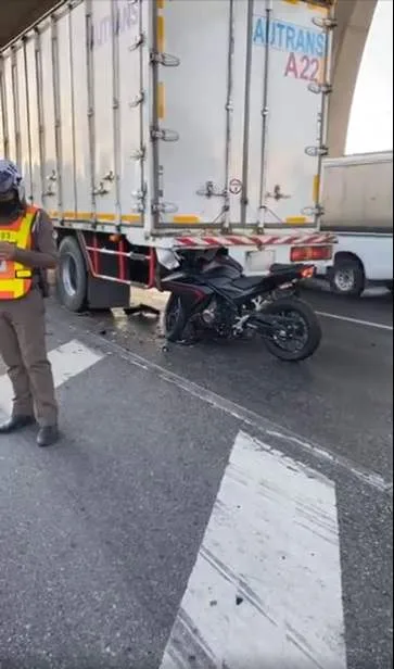 อุบัติเหตุ จยย.ชนท้าบบรรทุก6ล้อ ถนนบางนา-ตราด กม34-35 ช่องทางด่วนขาเข้าชลบุรี บาดเจ็บ 1ราย