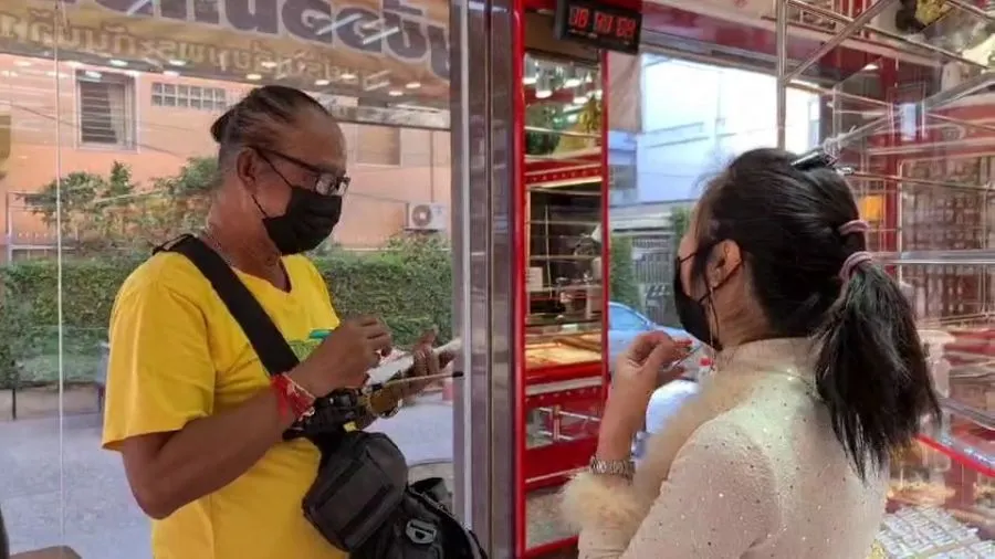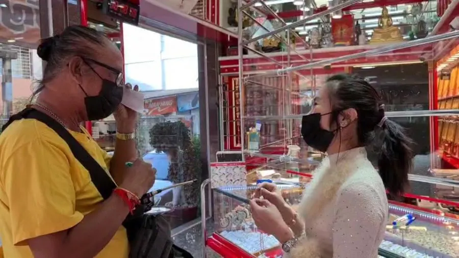ต่อมาผู้สื่อข่าวได้เดินทางไปที่ห้างทองเดือนเพ็ญ สาขาพานทอง ตั้งอยู่ในตลาดพานทองหมู่ 4 ตำบลพานทอง อำเภอพานทอง จังหวัดชลบุรี พบกับนางสาวมุทิตา วรบรรณากร อายุ 37 ปี เจ้าของห้างทองดังกล่าว ได้นำสร้อยคอทองคำหนัก 10 บาท เส้นใหญ่มาคล้องผ้าแมสปิดปากโชว์ พร้อมเปิดเผยว่า ได้ทำขายมานานแล้ว แต่เมื่อก่อนทำเส้นละ 2 สลึง และเส้นละ 1 บาท โดยทำเป็นทองคำเคลือบขาว แต่ต่อมาก็มีคนมาสั่งเป็นทองคำ ตนจึงมีความคิดว่า เอาทองคำ 10 บาทมาคล้องผ้าแมส ใส่ให้โลกจำ แล้วก็โพสต์ไปในกลุ่มเพื่อนเป็นการหยอกล้อกันเล่น ซึ่งต่อมาก็มีคนมาถามราคาเหมือนกัน ซึ่งสร้อย 10 บาท เส้นนี้ ราคาประมาณ 273,000 บาท แต่ราคาทองคำจะขึ้นลงอยู่อย่างนี้ แต่ถ้าใครสนใจจริงก็มาติดต่อสอบถามราคากันโทรศัพท์มาสอบถามก่อนได้ที่้เบอร์ 033-150799 ได้ซึ่งใส่แล้วก็ไม่น่ากลัวนะเพราะว่าใส่ทองทำอย่างนี้ก็ทำให้ดูสวยงามอีกแบบในงานเลี้ยงต่างๆก็ดูดี