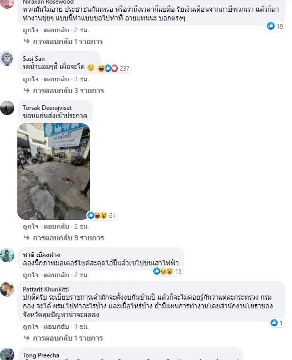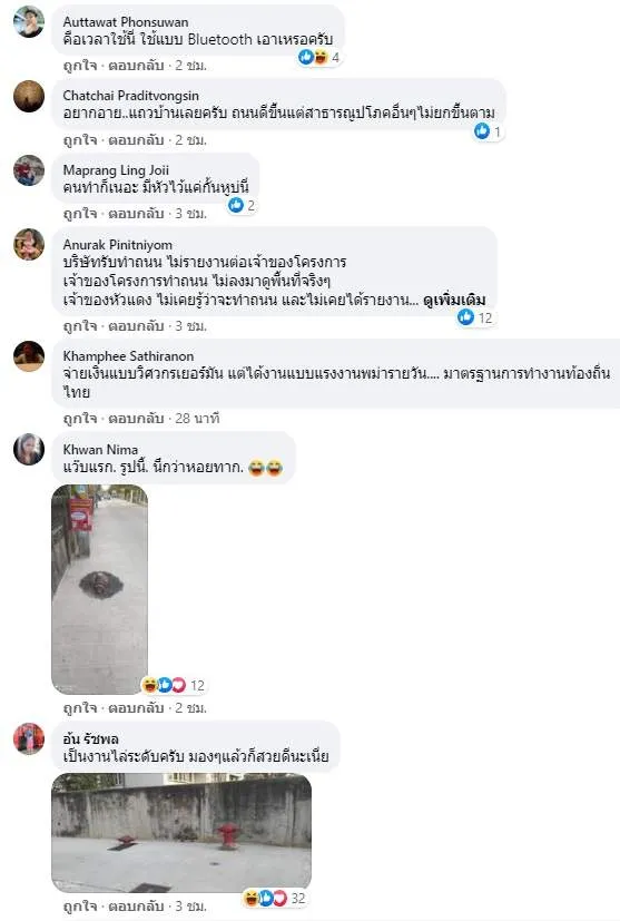 เพจเฟสบุ๊ค เฮ้ย นี่มันฟุตบาทไทยแลนด์ มีการแชร์ภาพเกี่ยวกับการทำถนนใหม่ และ ไม่มีมีการเคลื่อนย้ายวัสดุนึ่ง ซึ่งมองดูคล้ายหัวจ่ายน้ำปะปา (ขออภัยถ้ามองดูผิด) ซึ่งหลังจากมีการแชร์ออกไป ก็มีสมาชิกเฟสบุ๊คเข้ามาแสดงความคิดเห็นกันเป็นจำนวนมาก ต่างก็มองว่า เจ้าหน้าที่ทำงานได้ชุ่ยมาก ไม่มืออาชีพ กันเลย