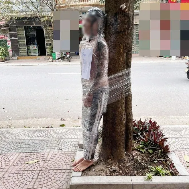 หนุ่มเวียดนาม ถูกจับห่อพลาสติกใสมัดติดต้นไม้ หลังไม่ยอมจ่ายเงินร้านสัก