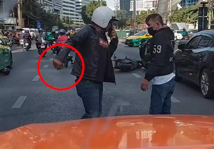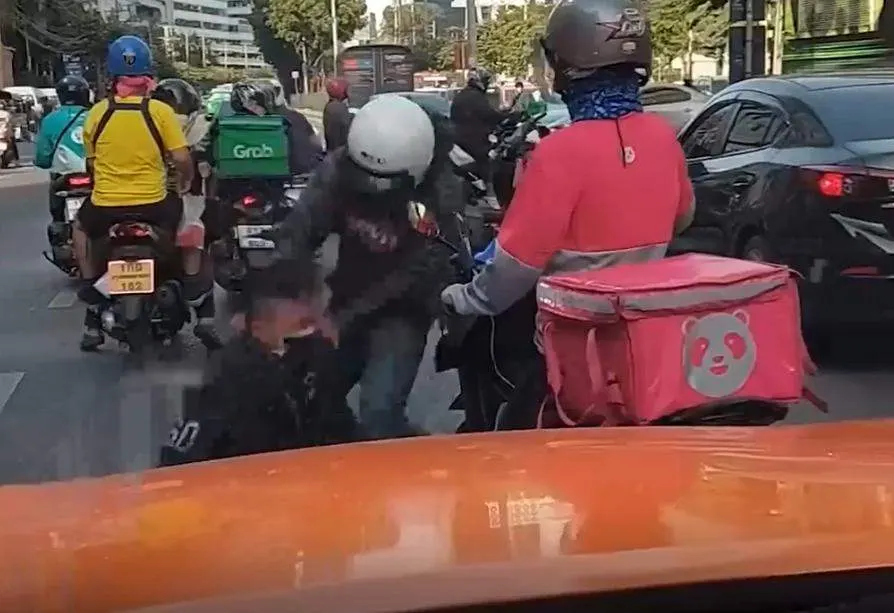 เปิดคลิป จยย.หัวร้อน ทิ้งรถวางมวยกลางถนนรัชดาฯ ซุกมีดพกทำร้ายคู่กรณี