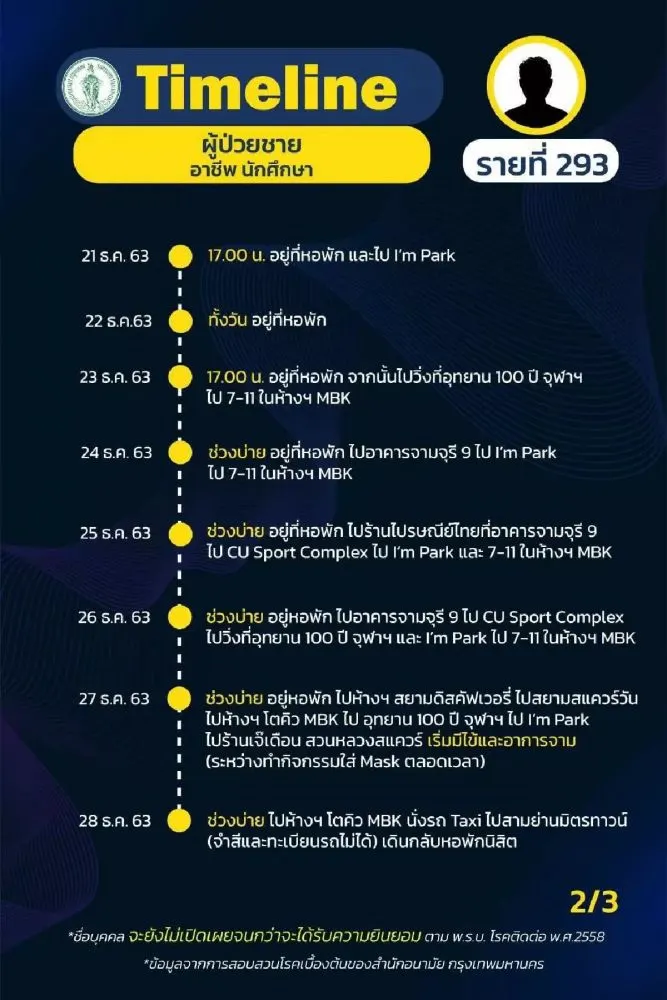 #เช็กไทม์ไลน์ ผู้ป่วยติดเชื้อ เป็นผู้ชาย เป็นนักศึกษา มีประวัติเดินทางไปเดินสยาม สามย่าน จุฬาฯ ห้างฯ MBK สะพานตากสิน ก่อนที่จะตรวจพบเชื้อ เมื่อวันที่ 4 ม.ค. 63 ที่ผ่านมา