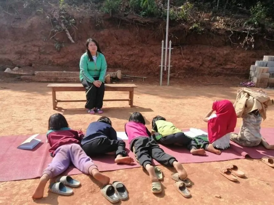 ภาพบรรยากาสครูและนักเรียน #โรงเรียนนาเกียน อมก๋อยที่ออกมานั่ง(นอน)#เรียนหนังสือนอกห้อง คลายหนาวกันด้วยแดดตอนกลางวัน ขอเป็นกำลังใจให้น้องๆและคุณครูด้วยครับ
