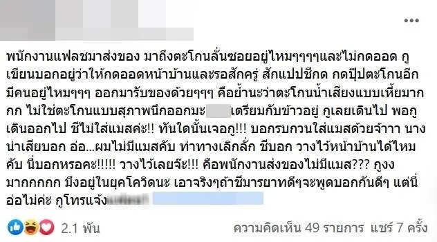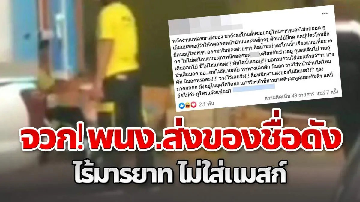 สาวเดือด! พนง.ส่งของชื่อดัง ถึงหน้าบ้านปุ๊ป ตะโกนลั่นซอยพูดจาแย่ แถมไม่ใส่แมสก์