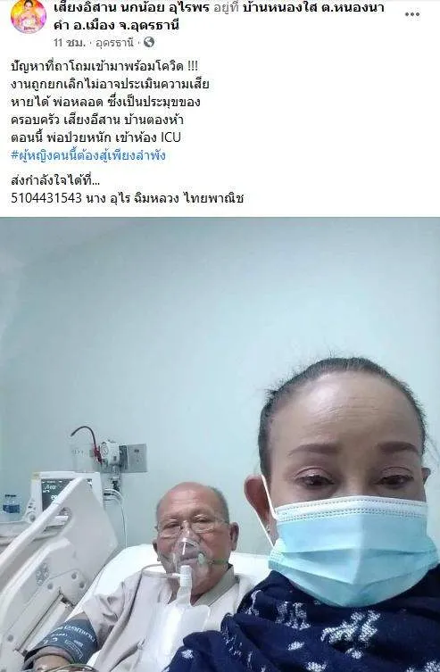 เมื่อวันที่ 14 ม.ค. 2564 แม่นกน้อย อุไรพร หัวหน้าหมอลำคณะเสียงอิสาน ไลฟ์สดเปิดใจ หลังเจอมรสุมอีกระลอกใหญ่จากพิษโควิด เผยอาการป่วยพ่อหลอดที่เข้ารพ. ประกาศขายบ้านตองห้า เพื่อรักษาอาการป่วย และต่อลมหายใจวงเสียงอิสานให้เป็นตำนานสืบไป