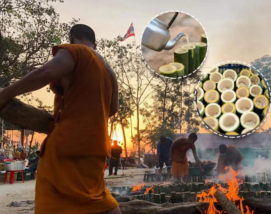 โดยมีผู้ใจบุญ นำไม้ไผ่มาถวายเพื่อทำกระบอกข้าวหลาม โดยทางวัดได้เริ่มทำการเผาข้าวหลามตั้งแต่วันที่ 3 ม.ค.ไปจนถึงวันที่ 17 ม.ค.นี้ ซึ่งข้าวหลามที่เผาบางส่วน ก็จะนำไปแจกจ่ายให้กับชาวบ้านในช่วงเช้าที่พระออกไปบิณฑบาตด้วย