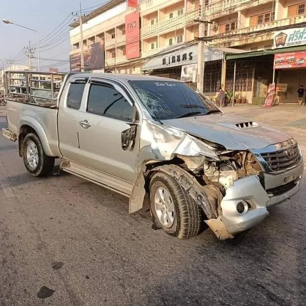 รถยนต์ยี่ห้อวีโก้สีบลอนเงิน ชนกับรถ จักรยายนต์ฮอนด้าเวฟ 125