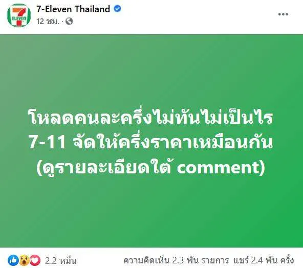 ลงทะเบียนคนละครึ่งไม่ทันไม่เป็นไร 7-11 จัดให้ "ครึ่งราคา" เหมือนกัน