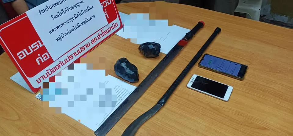 2.อาวุธมีดยาวประมาณ 70 ซม.รวมด้าม จำนวน 1 เล่ม