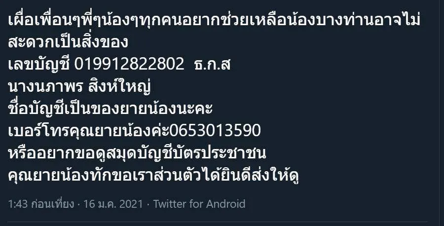 ใครต้องการช่วยเหลือ รายละเอียดอยู่ด้านล่างค่ะ
